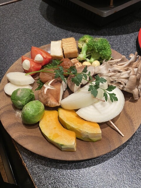 日本の匠はお野菜においてもその秀でた能力を発揮します。小規模だから出来る、海外では考えられない生育方法で小ぶりながら綺麗で緻密な味を実現。栄養価、薬膳効果の最も高い旬の時期に、「生で」「焼いて」「蒸して」「煮て」、豊富な国産こだわり野菜を存分に味わって頂きます。