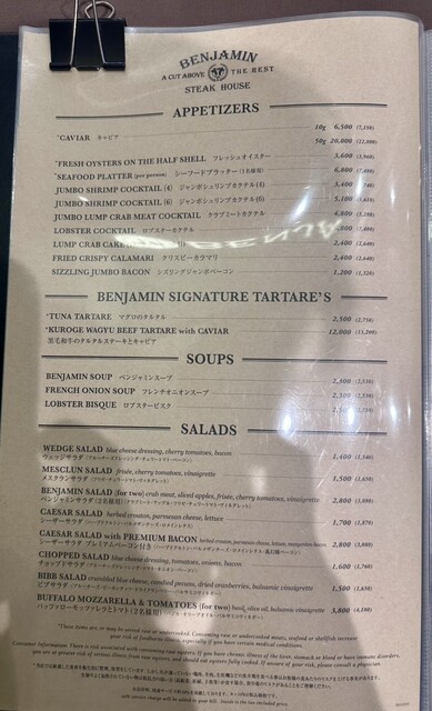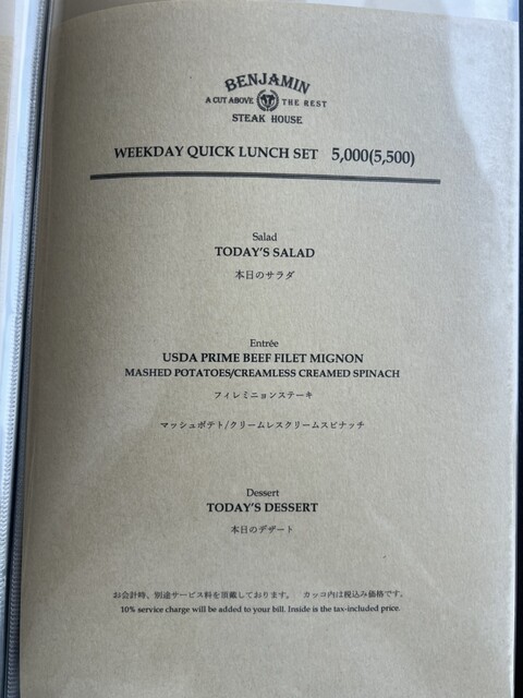 ベンジャミンステーキハウス 東京ガーデンテラス紀尾井町(BENJAMIN STEAK HOUSE) 公式