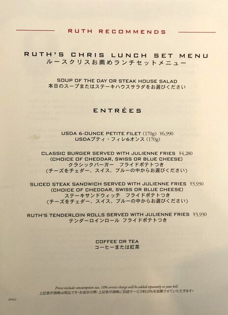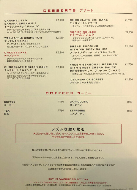 ルース クリス ステーキハウス(RUTH’S CHRIS STEAK HOUSE) 公式