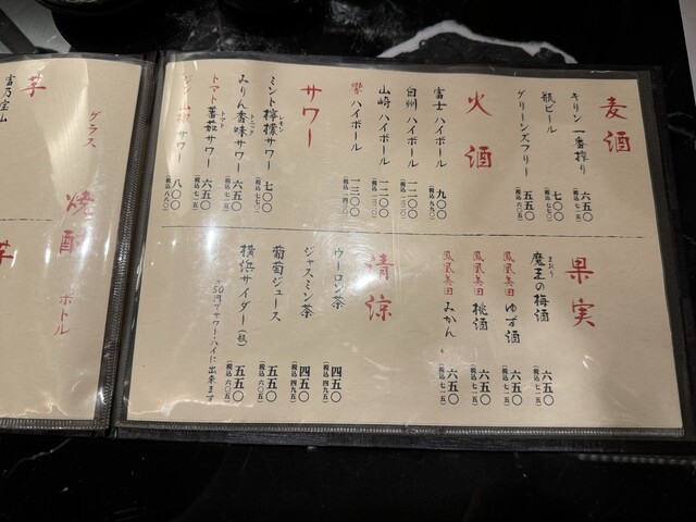 お席料:550円(コースはかかりません)、深夜(22時~翌5時)・個室料:10%別途