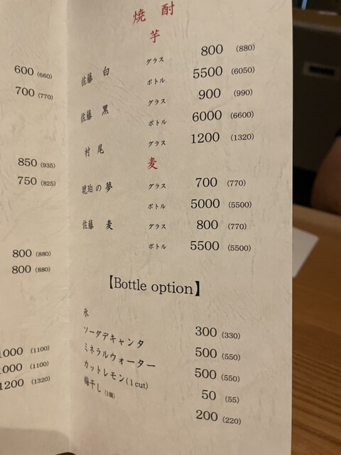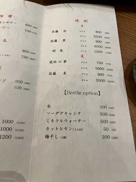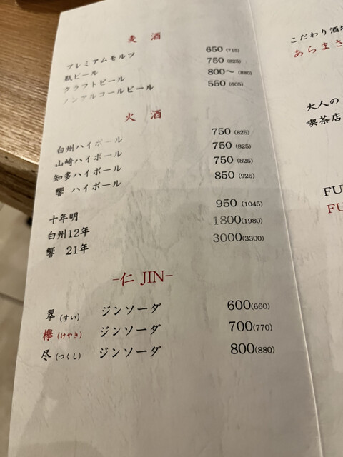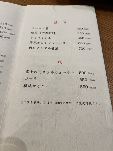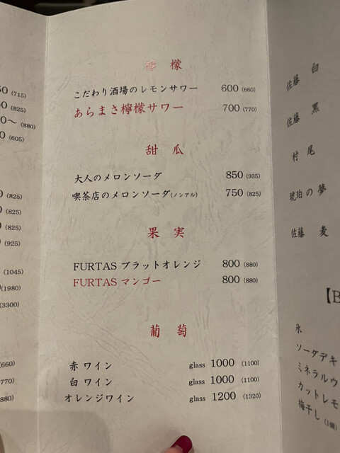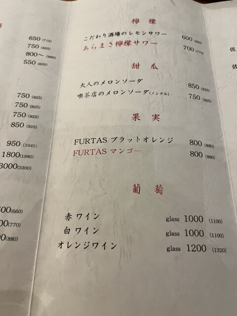 お席料:550円(コースはかかりません)、深夜(22時~翌5時)・個室料:10%別途