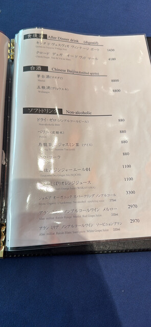 ソムリエがいる、複数言語メニューあり(英語)