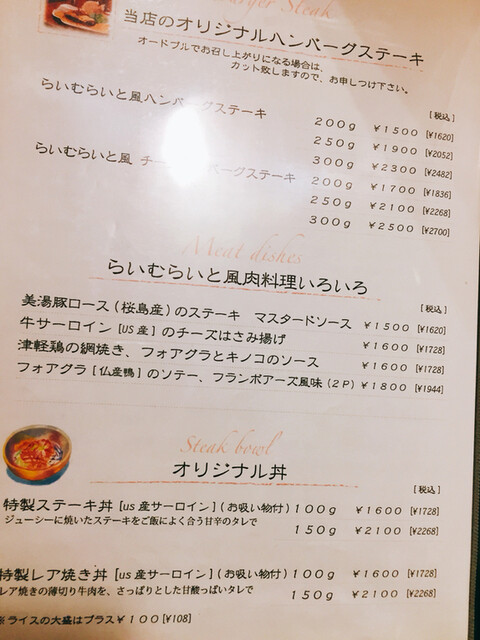 旬菜ステーキ処 らいむらいと(シュンサイステーキドコロ ライムライト) 公式