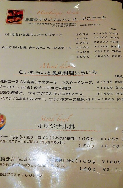 • ステーキ、ハンバーグ、ビストロ