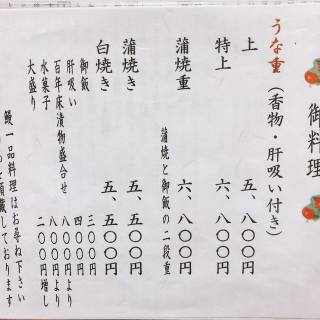 鰻料理はお時間を頂きますので、小学生未満の御子様のご入店を御遠慮させていただいております。