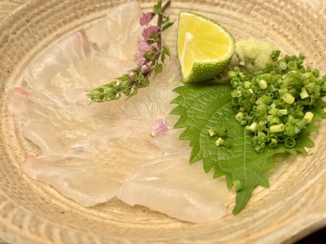 常備してある日本酒〈楯野川・五凛・豊盃・〆張り鶴〉以外にも大将おすすめの四合瓶〈5~7種〉やなくなり次第終了の季節の日本酒などをそろえております。冬になりますとふぐひれ酒やふぐ白子酒など当店ならではのお酒もございます。焼酎は麦・芋各2種、ビールは生とビン2種、ワインは赤・白両方ともハーフ・フル1種です。また、お持込もできますのでご相談ください。どれもお料理に合うものをご用意しております。