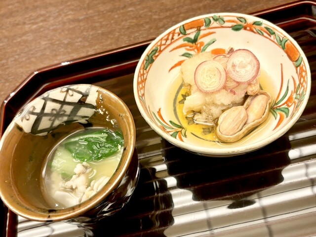 ふぐ、くえ、さより、ズワイ蟹などこの季節ならではのお料理が楽しめます。ウニとアワビの入った贅沢ないちご煮やふぐ料理にぴったりなひれ酒、白子酒もございます。ふぐコース、くえコース、蟹コース等のご予約も承っております。寒い毎日に心温まるひと時をお過ごしください。