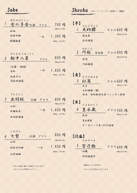 日本酒あり、焼酎あり、ワインあり