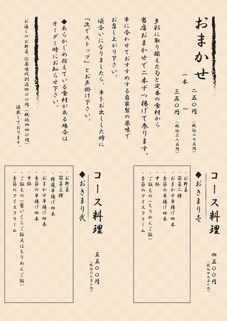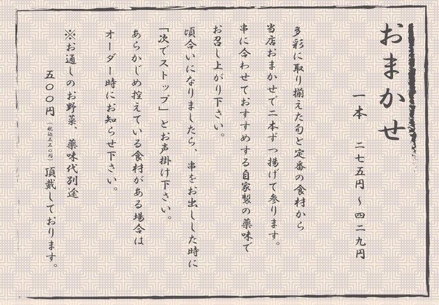 • 串揚げ、居酒屋、日本料理