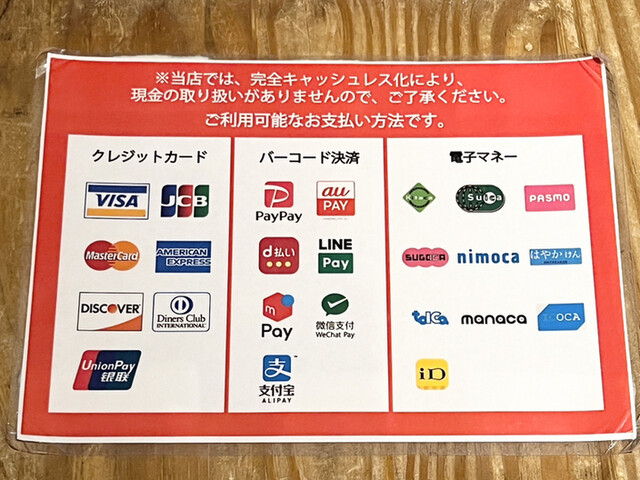 電子マネー可(交通系電子マネー(Suicaなど)、iD)