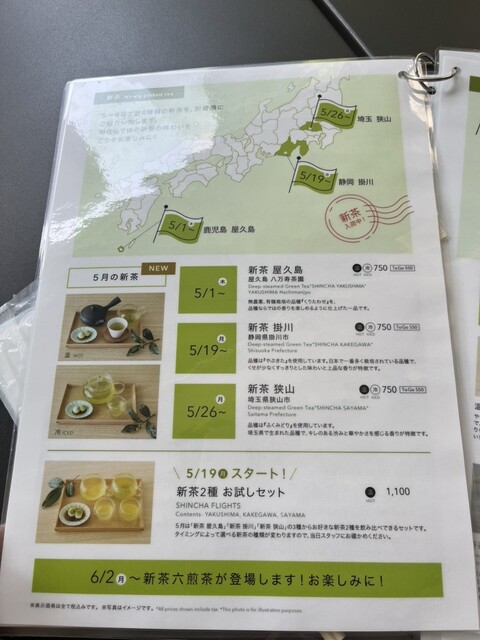テラス席含め禁煙でございます。お茶の淡い香りをお楽しみくださいませ。