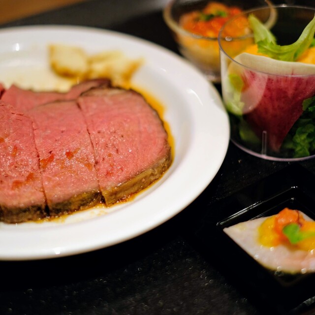 ディナータイムにお楽しみいただけるローストビーフは、お子様から大人まで大人気のメニュー。シェフが目の前で切り分けてご提供いたします。