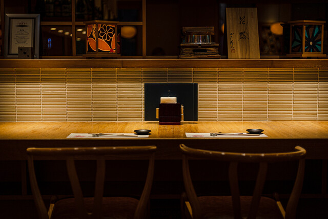 木の温かみを感じるカウンター席