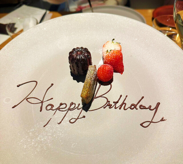 ※お誕生日、記念日のお客様にメッセージプレートを550円(税込。ディナータイムは+10%サービス料)でご用意しております。