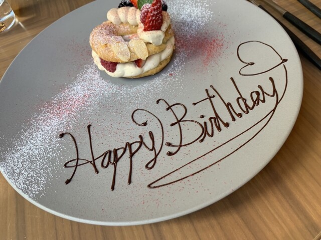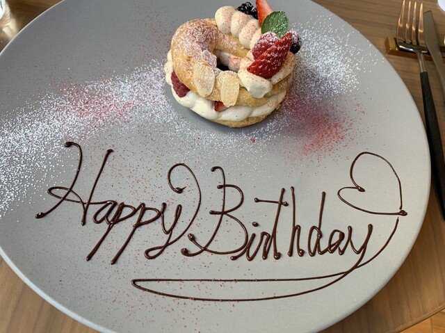 ※お誕生日、記念日のお客様にメッセージプレートを550円(税込。ディナータイムは+10%サービス料)でご用意しております。