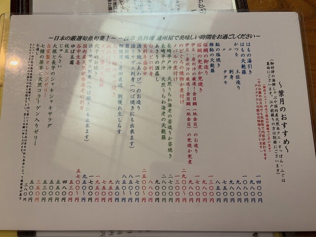 浅草 魚料理 遠州屋(あさくささかなりょうりえんしゅうや) 公式