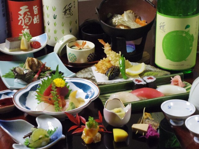 自慢の寿司メニューだけでなく、盛り込み料理の「ファミリーセット」、お気軽に召し上がれる「ほうずき市-税込4320円」から「特別会席-税込8640円~」等各種会席コースもございます。11月からは更に鍋物も加わる予定です。ご予約お待ちしております。