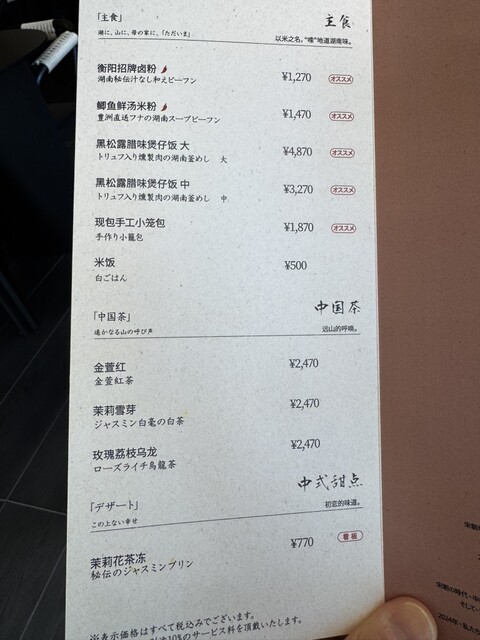 個室のご利用には、5,000元の使用料金を頂戴いたします。 ランチタイムが午後3時を過ぎた場合、30分ごとに5,000元の延長サービス料を頂戴いたします。 ディナータイムが午後11時を過ぎた場合も、30分ごとに5,000元の延長サービス料を頂戴いたします。