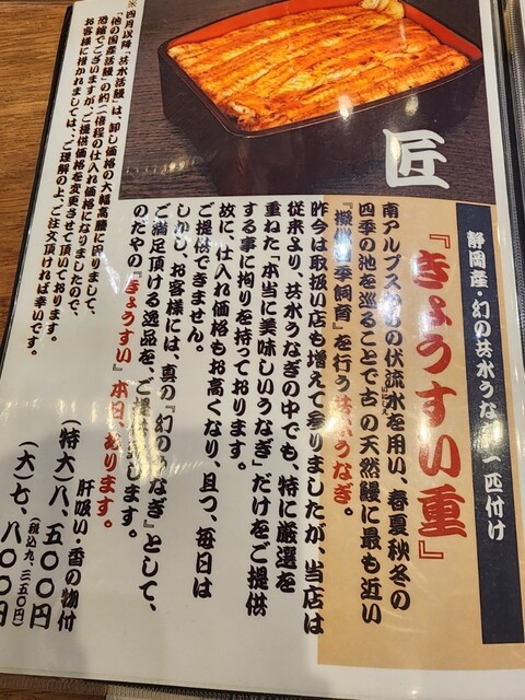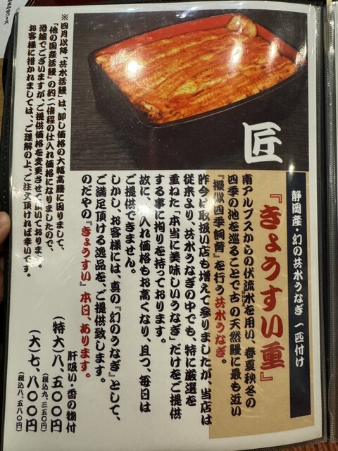 ※当店は活鰻調理の鮮度を重視して産地直送していますので、“順次売切れ”の「うな重」が都度ございますのでお早めのご来店をお勧め致します。