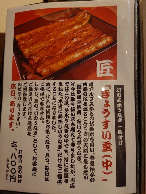 ※当店は活鰻調理の鮮度を重視して産地直送していますので、“順次売切れ”の「うな重」が都度ございますのでお早めのご来店をお勧め致します。