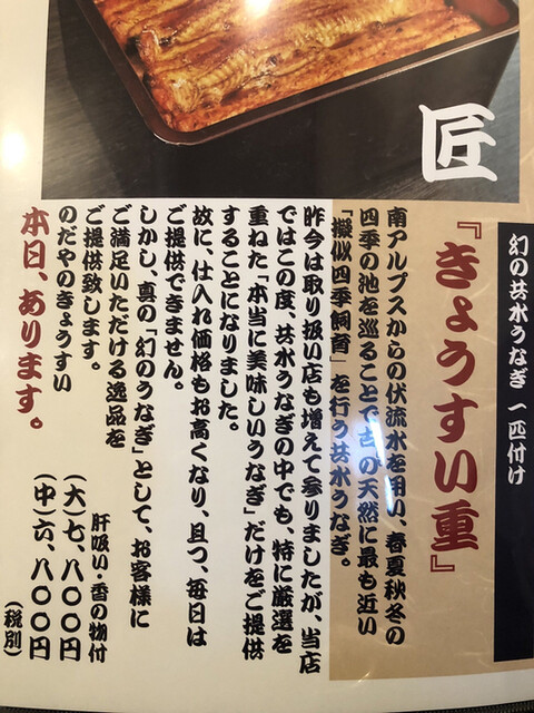 ※当店は活鰻調理の鮮度を重視して産地直送していますので、“順次売切れ”の「うな重」が都度ございますのでお早めのご来店をお勧め致します。