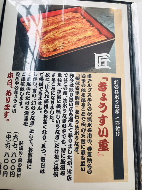 ※当店は活鰻調理の鮮度を重視して産地直送していますので、“順次売切れ”の「うな重」が都度ございますのでお早めのご来店をお勧め致します。
