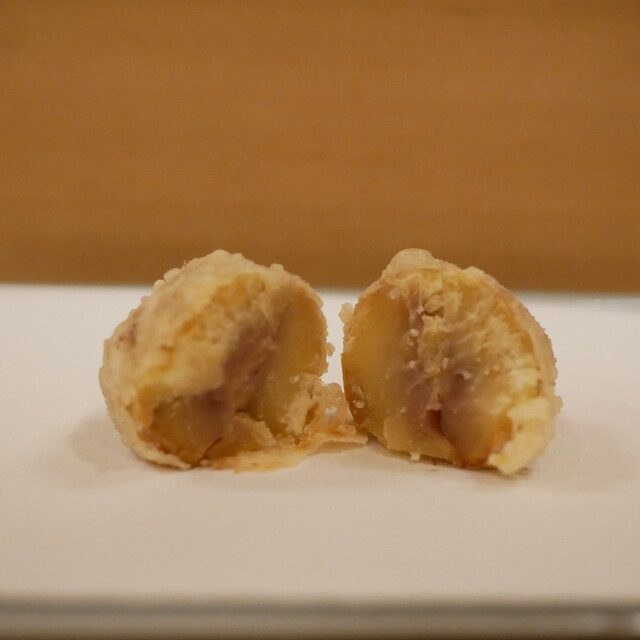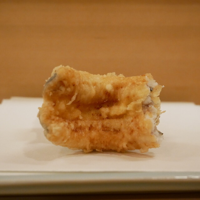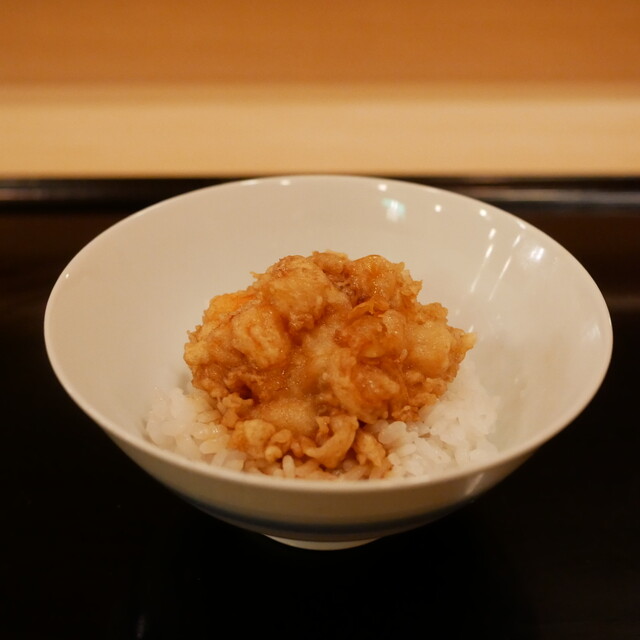 「清壽」の車海老は2度楽しめる。1本目は海老の風味を衣に閉じ込めるため、絶妙な火加減でしっかりと揚げていく。2本目は素材の鮮度を活かすため、芯にレア感を残す。同じ素材を使用しているとは思えない、それぞれ全く違った魅力は、丁寧な仕事の賜物。揚げ油には生から搾る100%の太白胡麻油を使用し、鮮度を保つためゲスト一組ごとに油を替える。新鮮な食材を一際輝かせる「清壽」の技術を、全身で味わってほしい。