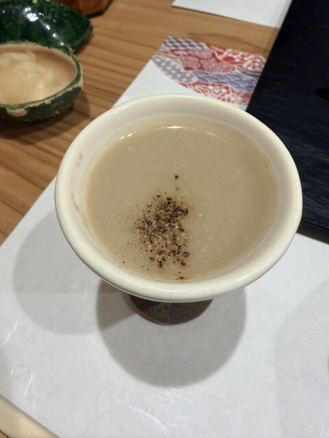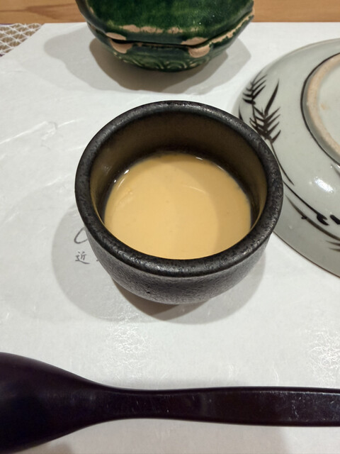 煮鮑の肝ソース、残った肝ソースにシャリを入れ肝リゾットに