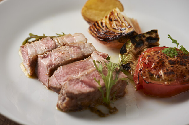 当店に来たら絶対に食べて欲しいお肉、NZ産『骨付きラムラック』2,400円。36時間マリネしたラムを、「備長炭だけ」で仕上げます。スパイシーな「ジュードアニョー(羊の出汁のソース)」をたっぷりかけてご提供。これだけ食べに来る方がいるほど、「脊髄に響く」最高に美味いラム肉です。武田真治も絶品!数量限定のため、お早めに・・・!