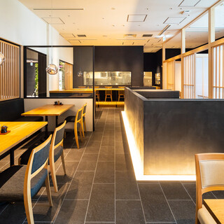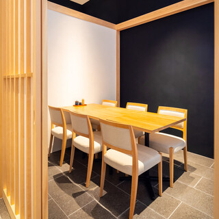 個室を4部屋ご用意。一面はガラス壁となっており、外の景色と日差しがテラスの様な解放感を味わえます。またディナー帯もビル灯りが夜景の様な最高のロケーションを演出致します。人気のお席となり、ご予約先着順にてご案内しております。