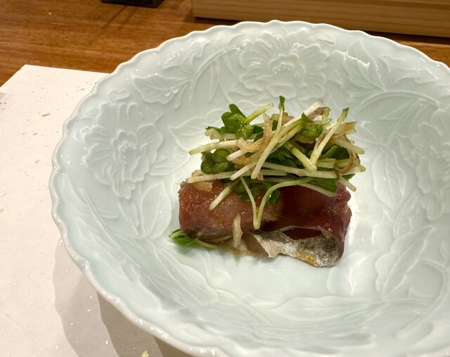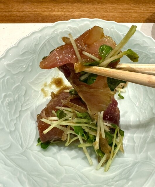 築地のプロフェッショナルな目利きの仲買さんとタックを組んで最高の食材の提供。旬な食材を使うので、毎月メニューが変わります。お酒もあわせたものをご提供。心からお寛ぎいただく極上の空間でマリアージュをご堪能ください。