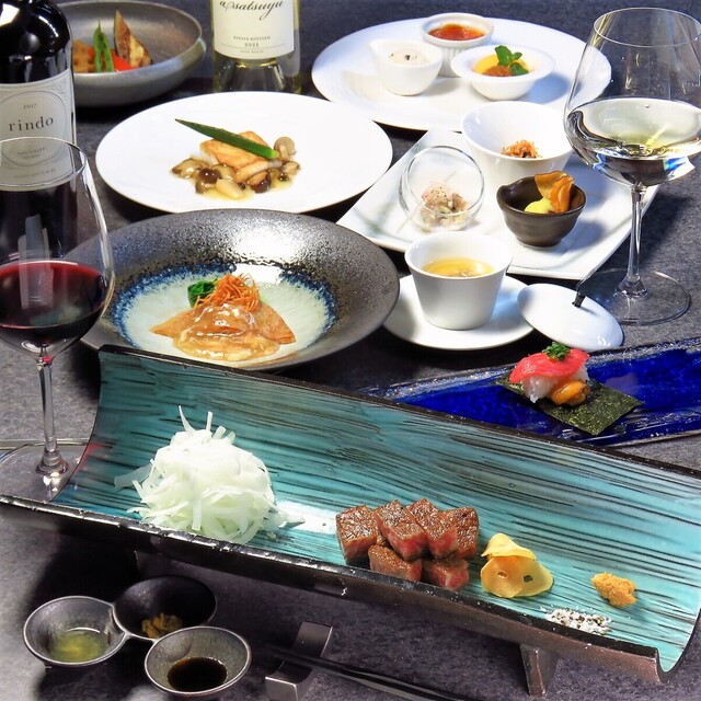 お食事に相応しいワインもぜひご一緒に。ソムリエが吟味した、アメリカやフランスで人気のワインを多数ご用意いたしました。中には、ケンゾーエステートの銘柄も。赤・白・スパークリングをそれぞれの料理に合わせて、自分好みのペアリングを愉しむのもおすすめです。料理とご一緒に贅沢な味わいを、ゆっくりとご堪能ください。接待をはじめ、記念日や誕生日など、外せない大切な日に寄り添う一杯をお届けいたします。