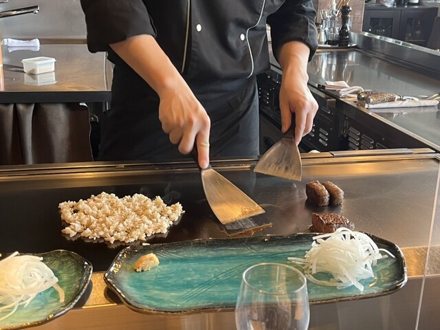 リゾート感をテーマに、落ち着いた大人の雰囲気となっております。シーンに合わせて使い分けできる中目黒の隠れ家的鉄板焼き店。臨場感溢れるカウンター席、周りを気にせず楽しめる半個室。また個室感覚でシェフの料理を目の前で焼いてもらえて楽しめるシェフズテーブル、それぞれ雰囲気が全く違うので気分に合わせてお楽しみ頂けます。