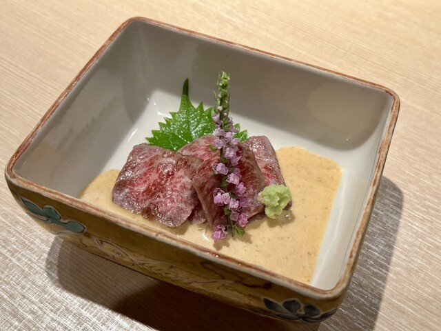一品料理と交互にお出しする握りは季節によって素材に変化がありお楽しみいただけます。