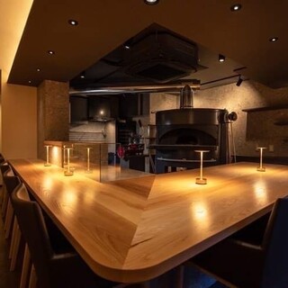 ライブ感あふれるカウンター席で、薪窯料理と世界各地のワインをコースでお楽しみいただけます。薪の炎が見える特等席で、暖色系のシンプルな内装が落ち着いた雰囲気を醸し出します。寿司屋や割烹のような直接感を体験しながら、当店自慢の料理とワインをご堪能ください。お一人様でもご友人、デートなど様々なシーンでお使いいただけます。特別な日にもぜひご来店お待ちしております。