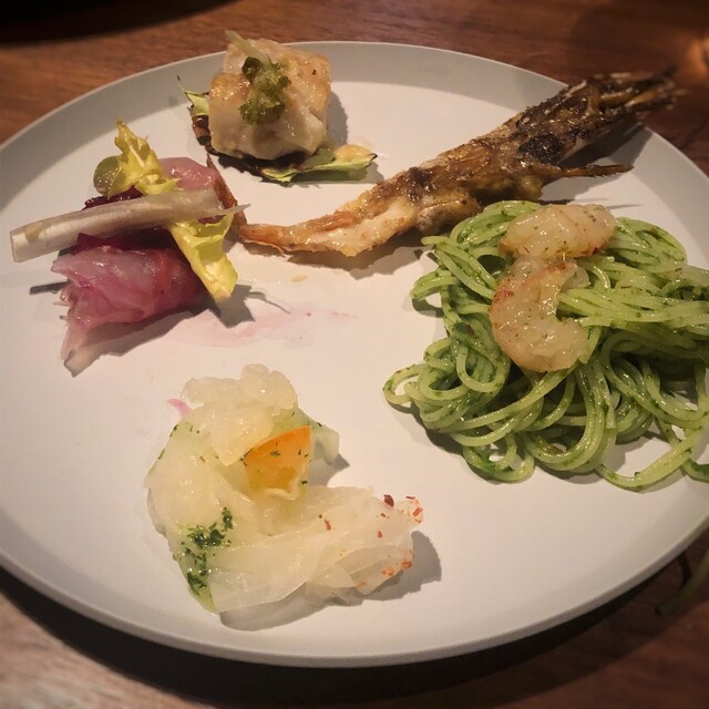 現在、京野菜と親しまれる野菜は約30年前、料理人と農家さん学者さんが一緒になって伝統野菜を復活させようと研究と栽培を繰り返した結果確立されたもの。その先頭を走っていた農家さんから直接仕入れているお野菜は全て「お任せ」で送っていただいています。ときには沢山分けていただいたそれらの食材を前にどうしようか?と提供方法について考えるることもありますがそれも醍醐味のひとつです。