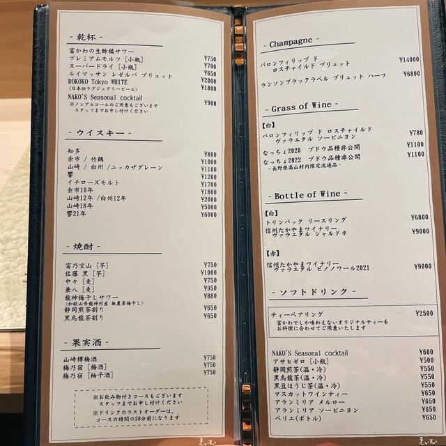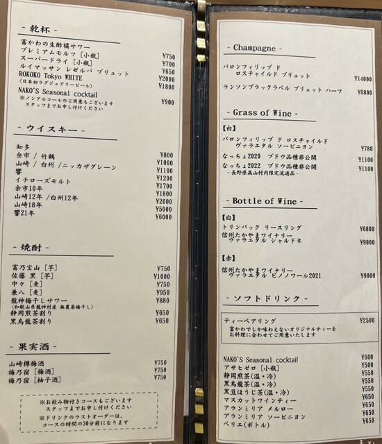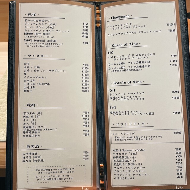 ※ご予約時間から15分ご来店、ご連絡がなかった場合はキャンセルポリシーに従い、お料理代金を頂戴いたしますことをご了承ください。