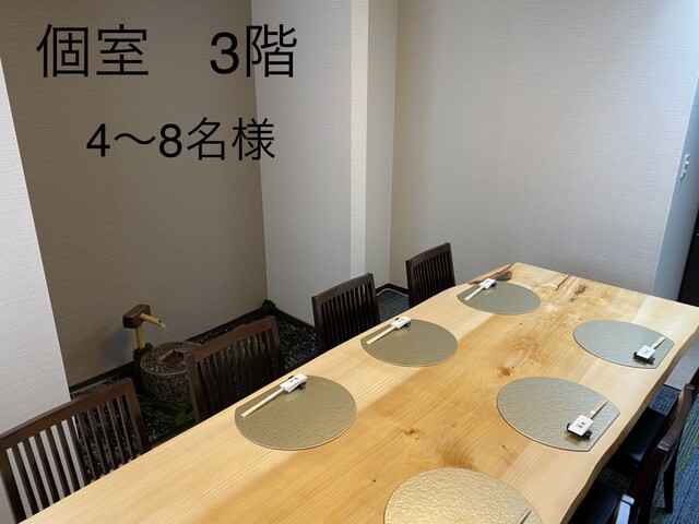 完全個室を2部屋ご用意しております。 1階:座敷(10名様まで) 3階:テーブル席(8名様まで)