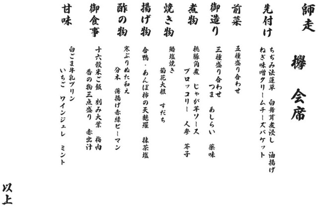 L.O. 料理14:00 ドリンク14:30