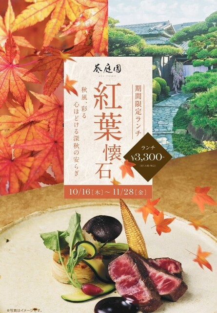 <10/16~11/28期間限定ランチ>【カジュアルコース/ノンアルコールも選べる乾杯酒付4,950円→3,850円】旬の食材を味わえる紅葉懐石 全5品5品