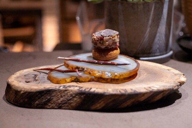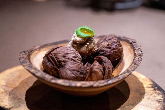 富士北麓の自然に寄り添った料理を、兄弟の手によって丁寧に提供しています。料理人コンペティションでグランプリを獲得したシェフ堀内浩平氏が、フランス修行や都内での経験を活かした一皿を展開。ソムリエ堀内茂一郎氏は、北海道や海外で培った知識で最適なワインを提案します。確かな技術と経験が生み出す料理とワインのハーモニーを、落ち着いた空間でご堪能ください。